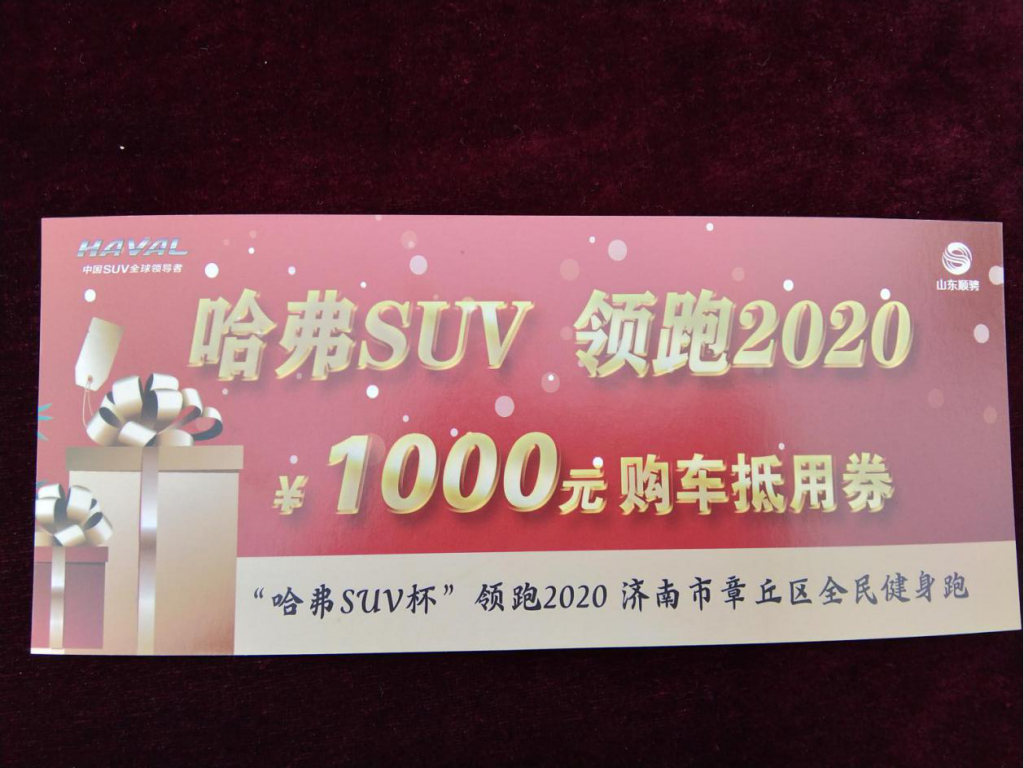 比赛分别决出男子组、女子组前三名获奖选手,并给予获奖者颁发奖金和博天堂备用网址的荣誉证书。男子/女子前三名 顺骋哈弗分别给与2000-3000元不等的购车抵用券,同时所有参赛选手顺骋哈弗均给与1000元购车代金券,可在顺骋哈弗济南事业部旗下4s店购买!有效期长达1年。